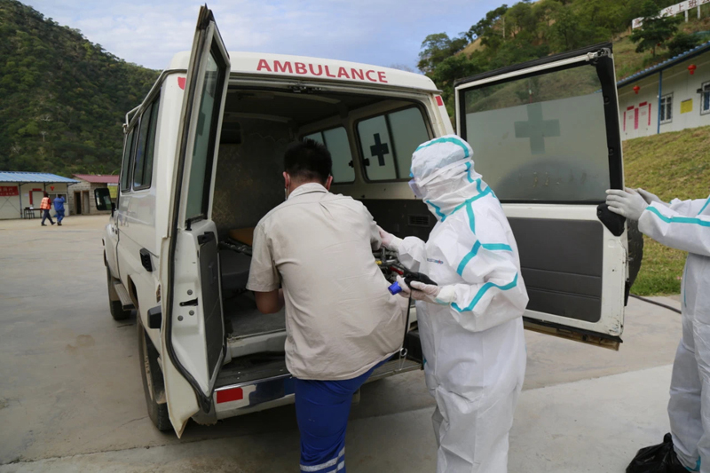 項目部組織疫情防控應(yīng)急演練,模擬中贊職工發(fā)生體溫異常等疑似癥狀后的應(yīng)急處置步驟,組織項目醫(yī)務(wù)室人員前往現(xiàn)場進行初步診斷,報告援贊比亞醫(yī)療隊進行再次問診,同時做好人員疏散和密切接觸者排查隔離工作,醫(yī)護人員及救護車司機等做好全套防護,演練現(xiàn)場秩序井然,步驟合理,提高了項目疫情防控應(yīng)急管理能力。