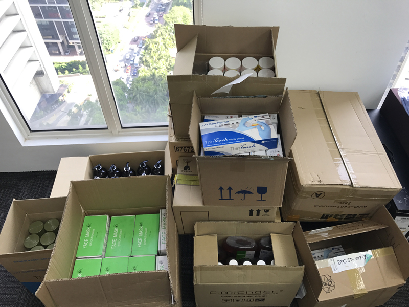 馬來(lái)西亞作為亞太區(qū)域總部所在地,1月25日發(fā)現(xiàn)了第一例新冠肺炎確診病例,3月18日馬政府開(kāi)始在全國(guó)范圍內(nèi)實(shí)行“行動(dòng)管制措施”,目前疫情全面暴發(fā),全國(guó)進(jìn)入了緊張狀態(tài)。馬公司在區(qū)域總部的統(tǒng)一指揮下,在實(shí)行管制措施前已聯(lián)合各在建項(xiàng)目部統(tǒng)一訂購(gòu)了270000個(gè)一次性醫(yī)用防護(hù)口罩,按照防疫工作要求確保滿足公司及各項(xiàng)目員工3個(gè)月的需求量;同時(shí)包括消毒劑、消毒噴霧、酒精洗手液、醫(yī)用防護(hù)手套等防疫物資全部按照3個(gè)月的標(biāo)準(zhǔn)儲(chǔ)備到位,各項(xiàng)防疫工作有條不紊地展開(kāi)。