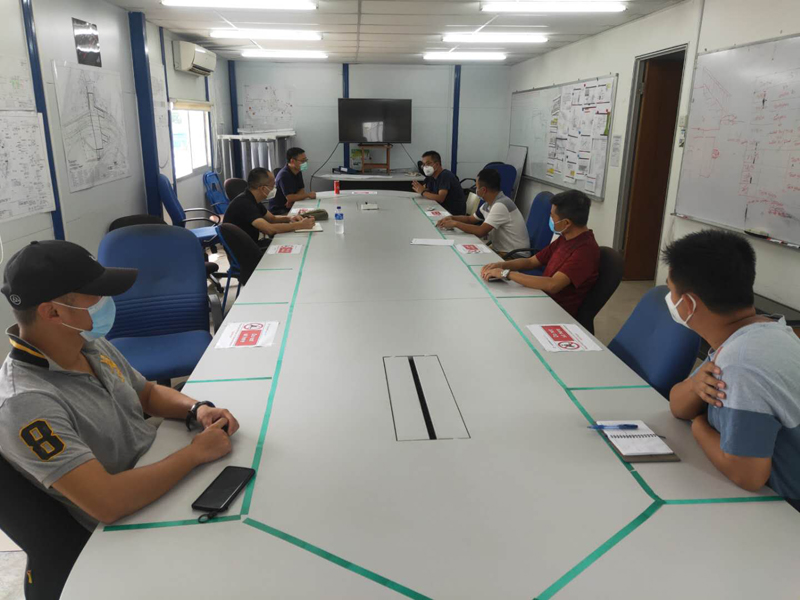 4月初,當新加坡政府宣布關停所有非基礎服務工作場合時,新加坡代表處提早做好了準備,通過微信建立起多方聯(lián)絡群,每日定時匯總員工體溫及健康狀態(tài),傳達集團的防疫指示,組織觀看防疫培訓視頻,并配合大使館和中資企業(yè)協(xié)會做好人員流動監(jiān)控。此外,各項目部定期為勞工營工人和本地員工派送生活物資和口罩,用實際行動關懷著員工,各國員工也堅定表達了與公司同舟共濟、共度難關的決心與信心。