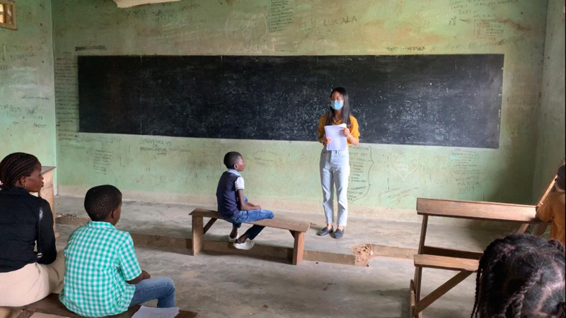 今年18歲的艾詩莉是這所學(xué)校初中三年級的學(xué)生,她非常期待這次活動,提前在小本子上寫下了很多問題。宣講結(jié)束后,她還追著志愿者不斷提問,希望能獲得更多有關(guān)疫情防護的知識。艾詩莉說:“疫情給我的生活帶來了許多麻煩,學(xué)校不能開展活動,我也不能去探望我的親人和朋友,希望科學(xué)家們能盡快研究出有效的措施,讓疫情趕快過去?!?。她的老師告訴志愿者,艾詩莉的家境并不好,她還有4個兄弟姐妹。艾詩莉?qū)W習(xí)非常刻苦,與其他孩子相比,她對疫情顯得更加關(guān)注和擔(dān)憂,因為她的親人中就有因患傳染病而去世的,她的夢想也是成為一名醫(yī)生?!爸x謝”,在志愿者們離開前,艾詩莉用不太標(biāo)準(zhǔn)的發(fā)言說出了這兩個字。她說,希望有機會能到中國去學(xué)習(xí)醫(yī)術(shù),救死扶傷。