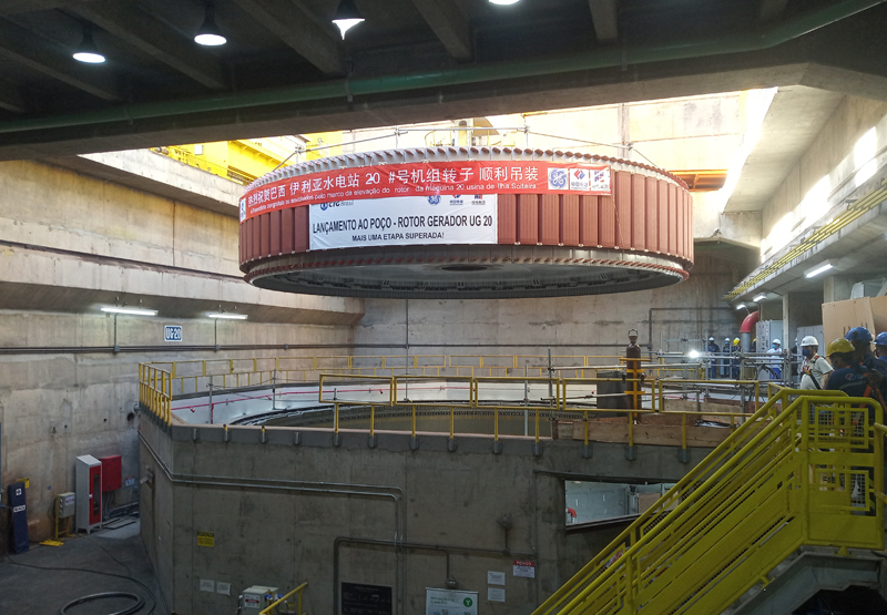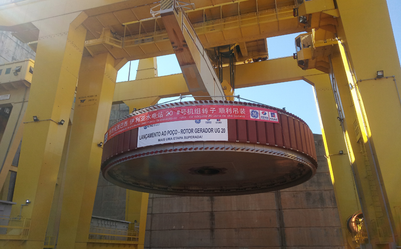 巴西伊利亞水電站升級改造項目首臺發(fā)電機(jī)組轉(zhuǎn)子順利吊裝