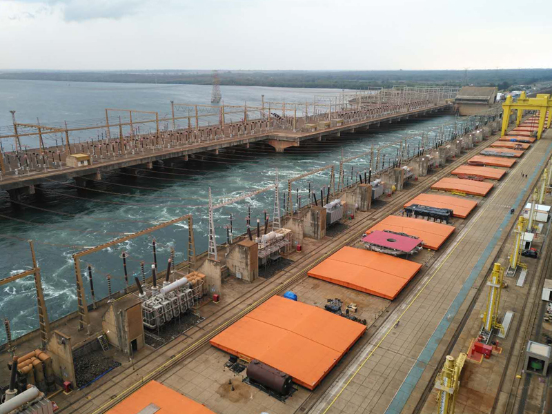 伊利亞水電站位于圣保羅州與南馬托格羅索州交界的巴拉那河流域,距離圣保羅州750km。電站的主體建筑布置從左到右依次為左岸土石壩、泄洪壩段、電站廠房、右岸土石壩,其中泄洪壩段和廠房為混凝土重力壩。電站始建于1965年,裝有20臺17.4萬千瓦Francis混流式機(jī)組,首臺機(jī)1973年發(fā)電,于1978年建成運(yùn)行。本批次現(xiàn)代化改造共安裝四臺機(jī)組及其附屬設(shè)備安裝調(diào)試,包含起重設(shè)備、壩上水力機(jī)械、攔污柵等設(shè)備設(shè)計、供貨及安裝調(diào)試。伊利亞水電站計劃于8月底實現(xiàn)首臺機(jī)組發(fā)電,目前機(jī)組安裝工作正在加速推進(jìn),此次完成轉(zhuǎn)子吊裝,為首臺機(jī)組發(fā)電奠定了堅實基礎(chǔ)。