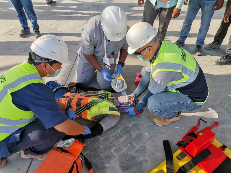 8月31日下午,沙特國王港P5標(biāo)項(xiàng)目高空墜落突發(fā)事件應(yīng)急演練在5號(hào)拌合站舉行。業(yè)主阿美PMT團(tuán)隊(duì)、項(xiàng)目部及工區(qū)領(lǐng)導(dǎo)、拌合站現(xiàn)場(chǎng)全體施工人員參加了此次演練活動(dòng)。
