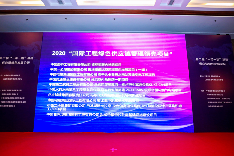 在隨后舉行的“2020國(guó)際工程綠色供應(yīng)鏈管理評(píng)價(jià)活動(dòng)”頒獎(jiǎng)儀式上,中國(guó)電建申報(bào)的7個(gè)項(xiàng)目獲得獎(jiǎng)項(xiàng),其中烏干達(dá)卡魯瑪水電站和輸變電工程項(xiàng)目、馬來(lái)西亞凱德隆2×413MW級(jí)聯(lián)合循環(huán)燃?xì)怆娬卷?xiàng)目、贊比亞下凱富峽水電站項(xiàng)目獲得“領(lǐng)先項(xiàng)目獎(jiǎng)”;泰國(guó)GNP風(fēng)電總承包項(xiàng)目、安哥拉羅安達(dá)省電氣化及入戶連接項(xiàng)目、摩洛哥NOOR TAFILALT 120MW太陽(yáng)能電站項(xiàng)目和沙特阿美MGS燃?xì)庠鰤赫径跀U(kuò)建項(xiàng)目獲得“優(yōu)秀項(xiàng)目獎(jiǎng)”。此外,電建國(guó)際作為本次論壇的協(xié)辦單位,獲得了“2020國(guó)際工程綠色供應(yīng)鏈管理評(píng)價(jià)活動(dòng)”最佳組織獎(jiǎng)。