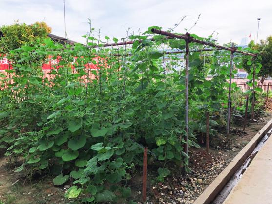 在吃的法則里,風(fēng)味重于一切。蘇蘇人從來(lái)沒(méi)有把自己束縛在一張乏味的食品清單上。大廚懷著對(duì)食物的理解,在不斷的嘗試中尋求著轉(zhuǎn)化的靈感。工地的工作枯燥乏味,宿舍辦公室施工現(xiàn)場(chǎng),每天都是三點(diǎn)一線。一邊要忍受著因語(yǔ)言不通而和監(jiān)理業(yè)主造成的誤會(huì),一邊還要協(xié)調(diào)分包商的干活消缺,一天下來(lái)往往只顧得上胡亂扒上兩口飯,至于可口與否已經(jīng)不在味蕾的工作范圍之內(nèi)了。大廚看在眼里急在心里,長(zhǎng)此以往,不僅工作效率得不到保證,對(duì)員工的身心健康也是一大挑戰(zhàn)。他每天都在思考,如何才能讓現(xiàn)場(chǎng)員工吃得好吃的開(kāi)心,還能吃出家鄉(xiāng)的味道。于是,蘇蘇后院的菜園子就這么悄悄地走來(lái)了。