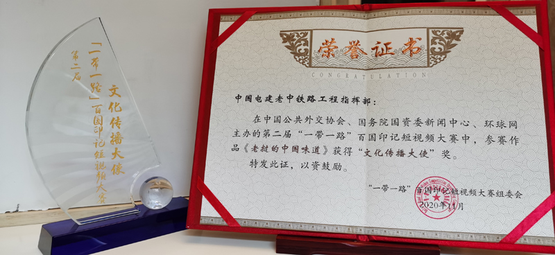 11月20日,由中國公共外交協(xié)會(huì)、國務(wù)院國資委新聞中心和環(huán)球網(wǎng)聯(lián)合主辦的第二屆“一帶一路”百國印記短視頻大賽頒獎(jiǎng)典禮在武漢舉行,中國公共外交協(xié)會(huì)會(huì)長(zhǎng)吳海龍、國務(wù)院國資委新聞中心副主任張義豪、湖北省委宣傳部一級(jí)巡視員榮罕君、環(huán)球時(shí)報(bào)副總編輯謝戎彬出席了頒獎(jiǎng)典禮并致辭。此外,多國駐華使館外交官、部分獲獎(jiǎng)中央企業(yè)代表以及多國媒體記者也參加了此次活動(dòng)。公司報(bào)送的來自中老鐵路視頻作品《老撾的中國味道》和《老撾翻譯阿爽的成長(zhǎng)故事》分別榮獲“文化傳播大使獎(jiǎng)”和“優(yōu)秀作品獎(jiǎng)”。