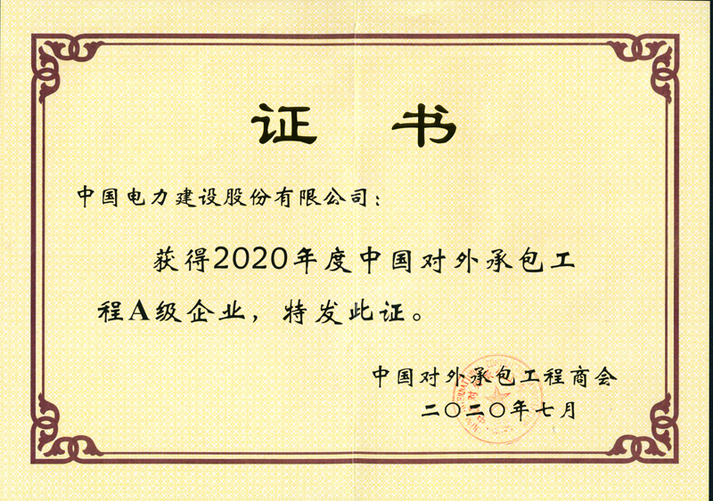 中國電建獲評2020年度對外承包工程A級企業(yè)