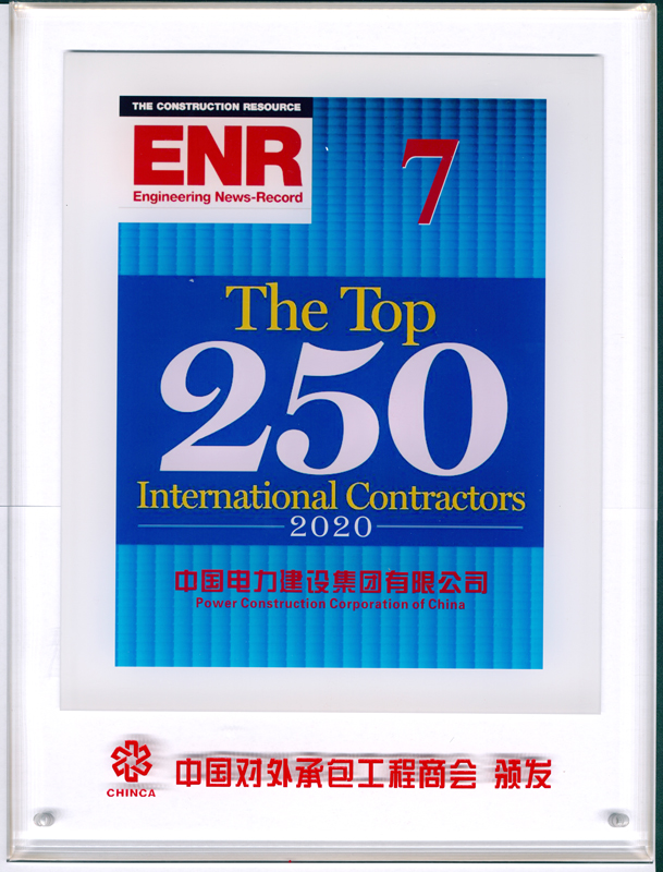 論壇上,同時舉行了2020ENR全球最大250家國際承包商上榜企業(yè)頒獎儀式。中國電建榮登2020ENR全球最大250家國際承包商第7位,中資企業(yè)第二,連續(xù)四年進入前十。