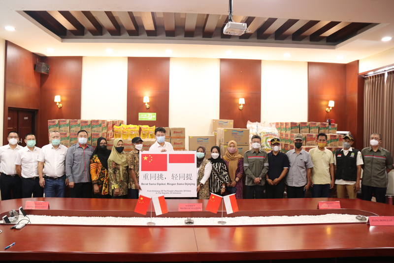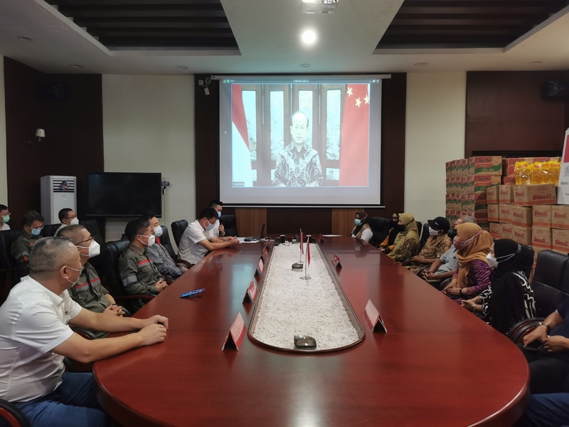 肖千大使首先感謝中國電建對(duì)本次活動(dòng)的精心組織和大力協(xié)助。他表示,雅萬高鐵是印尼乃至東南亞首條高速鐵路,也是中印尼發(fā)展戰(zhàn)略對(duì)接和共建“一帶一路”旗艦項(xiàng)目。在兩國政府指導(dǎo)下,中印尼參建企業(yè)克服疫情不利影響,持續(xù)推進(jìn)項(xiàng)目建設(shè)。項(xiàng)目建設(shè)取得積極進(jìn)展離不開沿線居民理解與支持,為表達(dá)中國人民友好情誼,大使館特向沿線居民捐贈(zèng)大米、食用油、方便面、醫(yī)用口罩等生活和抗疫物資,幫助村民們更好應(yīng)對(duì)疫情影響。中國和印尼隔海相望,是好鄰居、好朋友、好伙伴。近年來,在習(xí)近平主席和佐科總統(tǒng)共同引領(lǐng)下,中印尼全面戰(zhàn)略伙伴關(guān)系不斷深化拓展。中方愿繼續(xù)同印尼方加強(qiáng)互利合作,推動(dòng)中印尼全面戰(zhàn)略伙伴關(guān)系不斷邁上新臺(tái)階,為兩國人民創(chuàng)造更多福祉。
